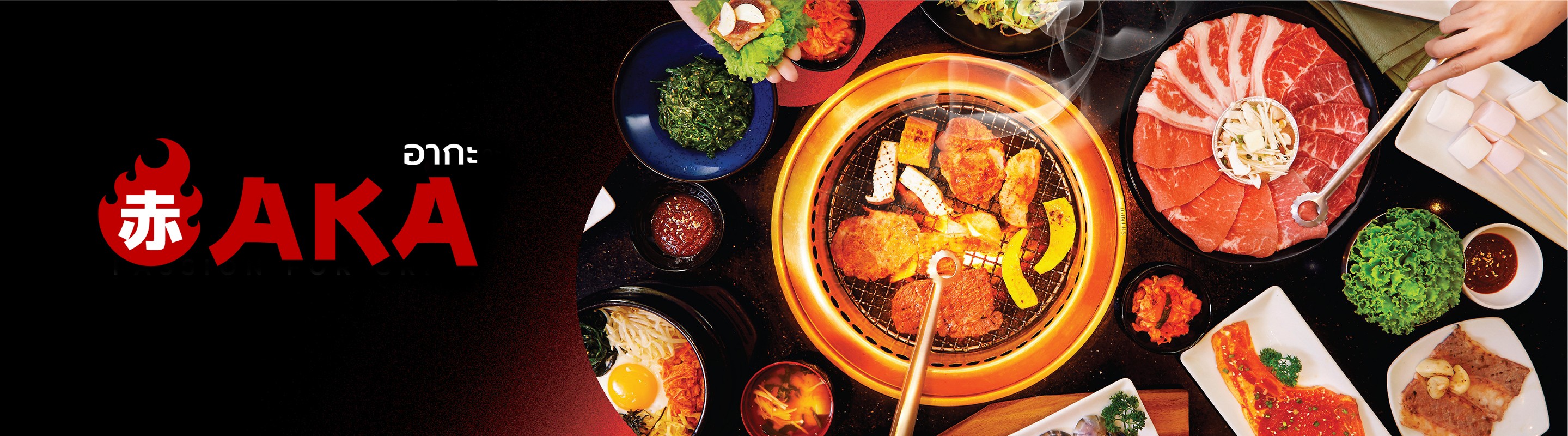 อากะ ร้านอาหารปิ้งย่างสไตล์ญี่ปุ่น “อากะ” ในภาษาญี่ปุ่นแปลว่า “สีแดง” ซึ่งให้ความรู้สึกร้อนแรงและเป็นสัญลักษณ์ของเปลวไฟจากเตาถ่านที่ใช้การปิ้ง-ย่างอาหาร โดยรูปแบบของร้านเป็นร้านปิ้ง-ย่างยากินิกุ (YAKINIKU) ซึ่งให้บริการทั้งในรูปแบบ A LA CARTE และ BUFFET ที่ให้ความสำคัญกับรายละเอียดและการคัดสรรวัตถุดิบที่มีคุณภาพและชื่อเสียงจากที่ต่างๆ ทั่วทุกมุมโลก มารวมกับวิธีการปรุงรสอาหารตามแบบฉบับของอากะ เพื่อตอบสนองความอร่อยและส่งต่อประสบการณ์มื้อปิ้งย่างที่ดีที่สุดให้แก่ลูกค้าต่อไป
